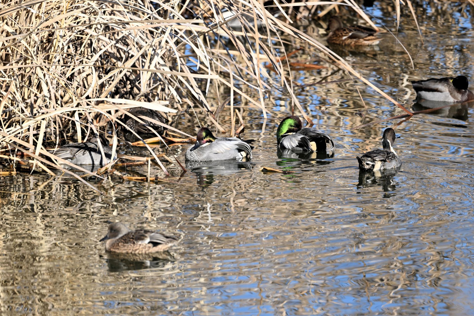 ここにも行ってみました。 道路で、「モモイロペリカン」が、待ってました。 自転車道を、ちょっと入ると、近くに、「カンムリカイツブリ」。 ちょっと歩いて、目的の鳥たちです。 何万羽居るのか、今季見てなかった「トモエガモ」を、見る事が出来ました。