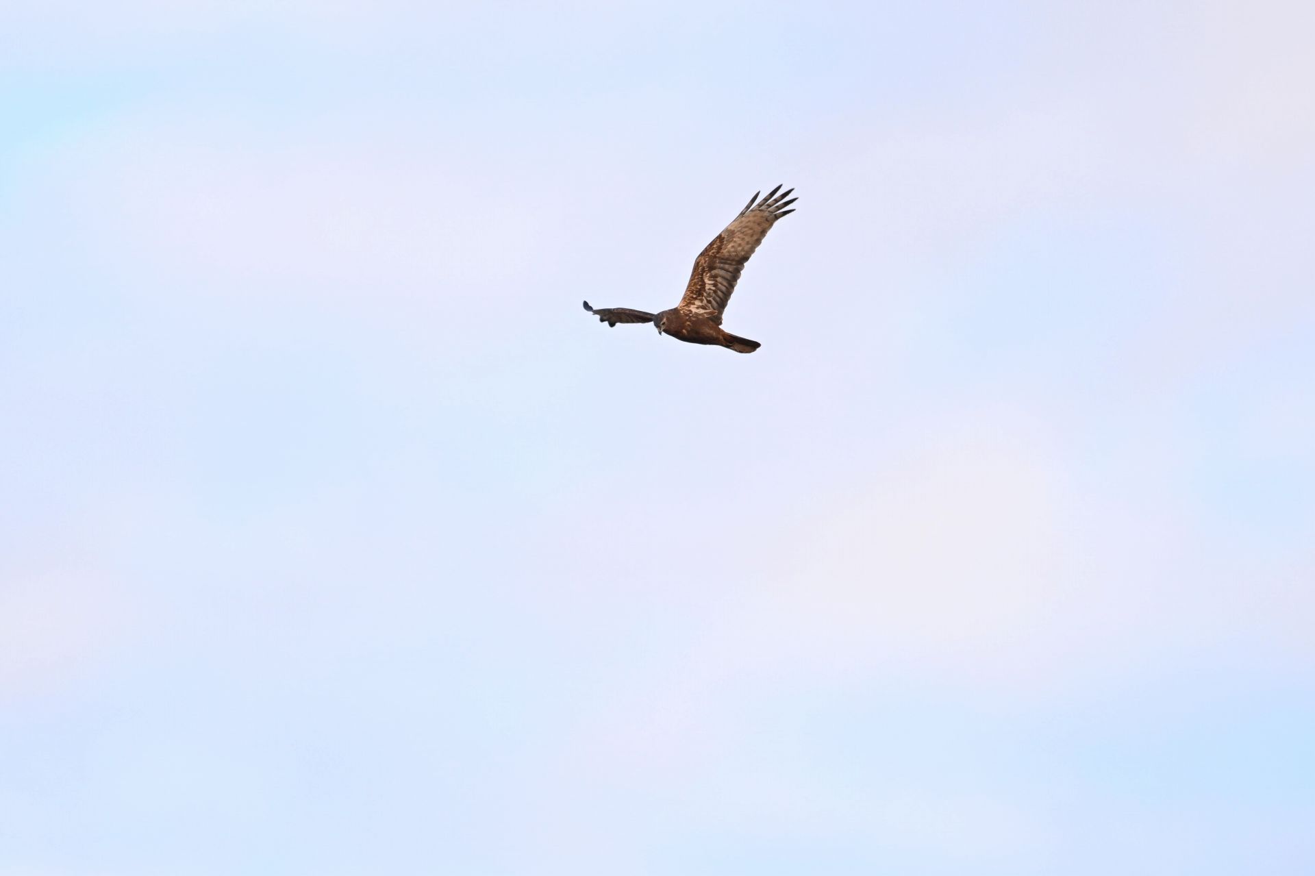 沼に、こんなのが飛んできましたが、すべての鴨が逃げるわけではないんですね。 沼を通過する「チュウヒ」。 一部の鴨が、飛び出しました。 少数の鴨が、飛んだだけで、この時は、あまり気にしなかったようです。