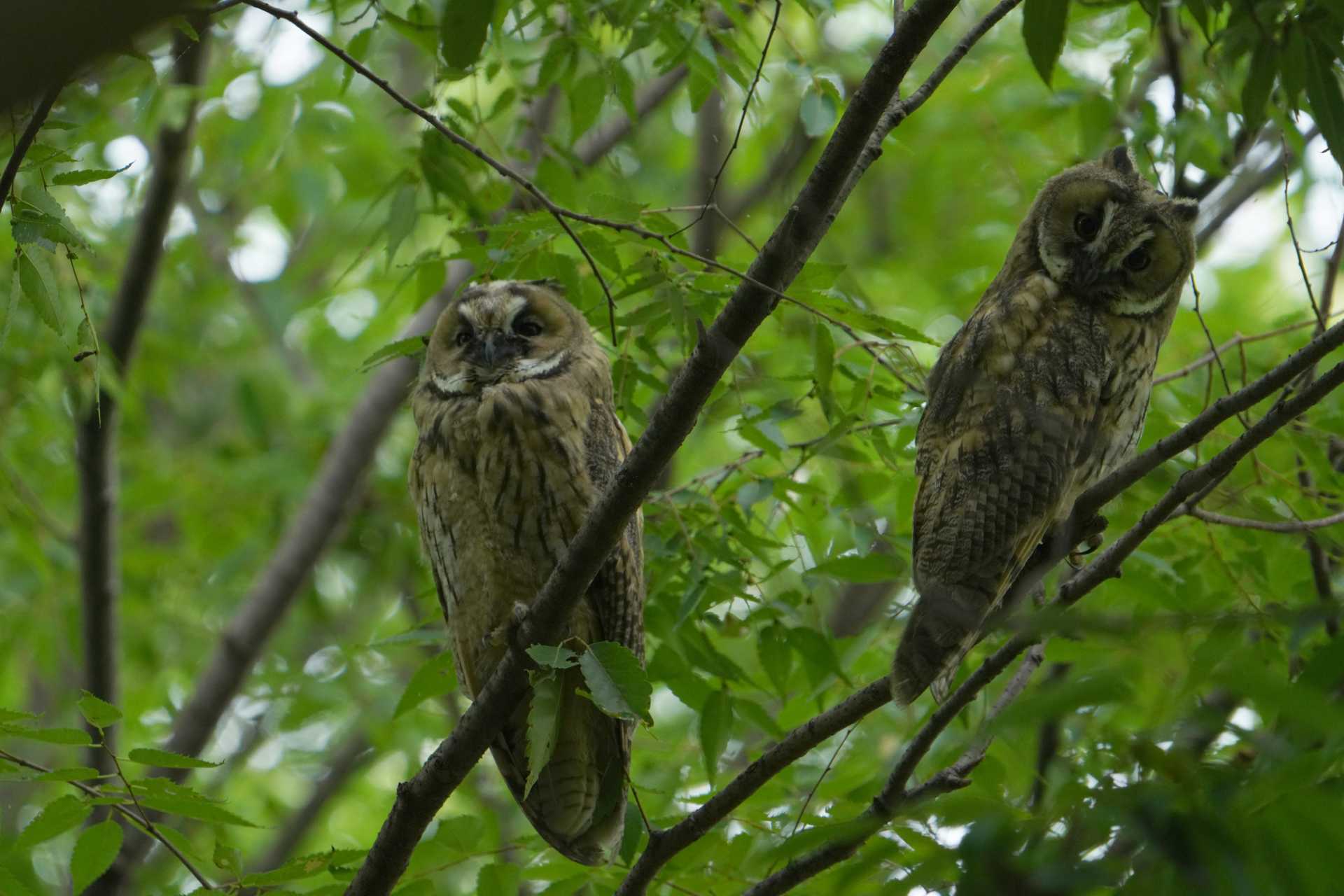 通りかかったので、寄ってみました。 さすがに、撮り飽きたのか、Cマンは、1組だけでした。どれが親だかわからない、「トラフズク親子」です。