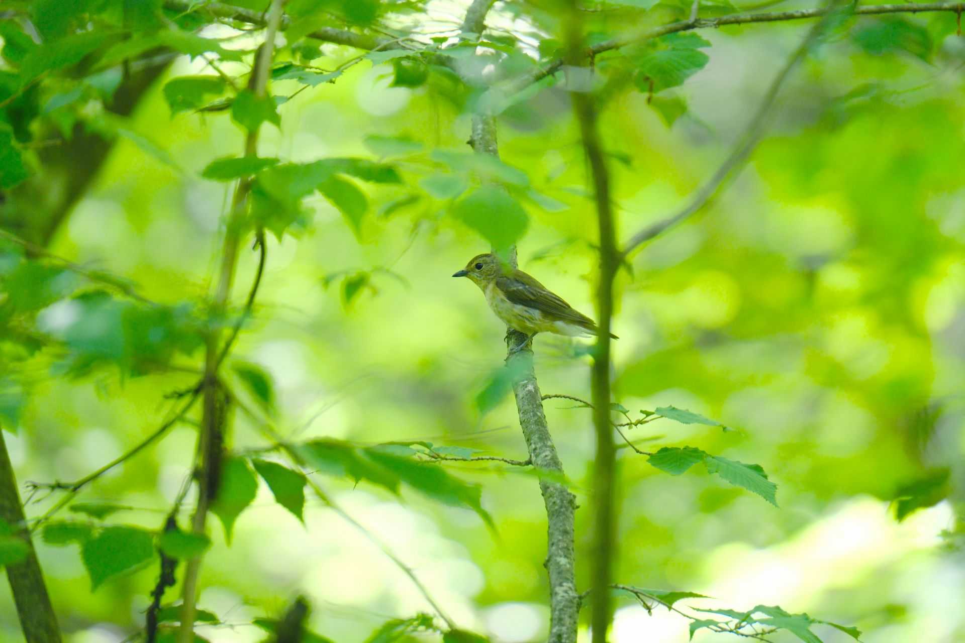 林の中、今季初見の「キビタキ♀」を、見つけたので、パチリと。