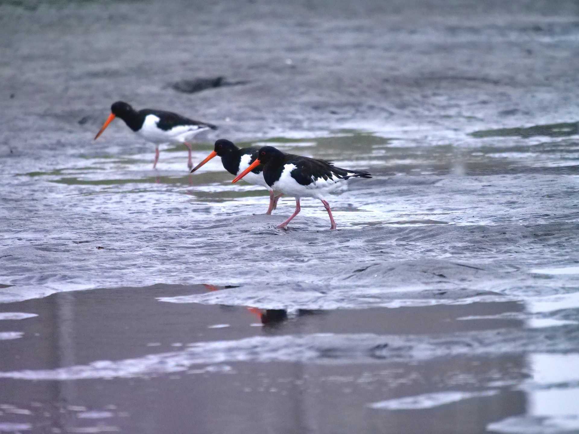 小さなシギチが、飛んで行った後の続きです。 小さなシギチが、近くにいないので、中型のシギが残りました。まずは、「ミヤコドリ」。 近づいてくる鳥は、「コオバシギ」かな? 「オオソリハシシギ」も、近づいて。 「オバシギ」の群れも、近くに飛んできて、目の前で。周りを見回しても、他のシギチが、見当たらなかったので、この後、帰ることに。中型シギが、近くで撮れて、楽しい鳥見になりましたよ。
