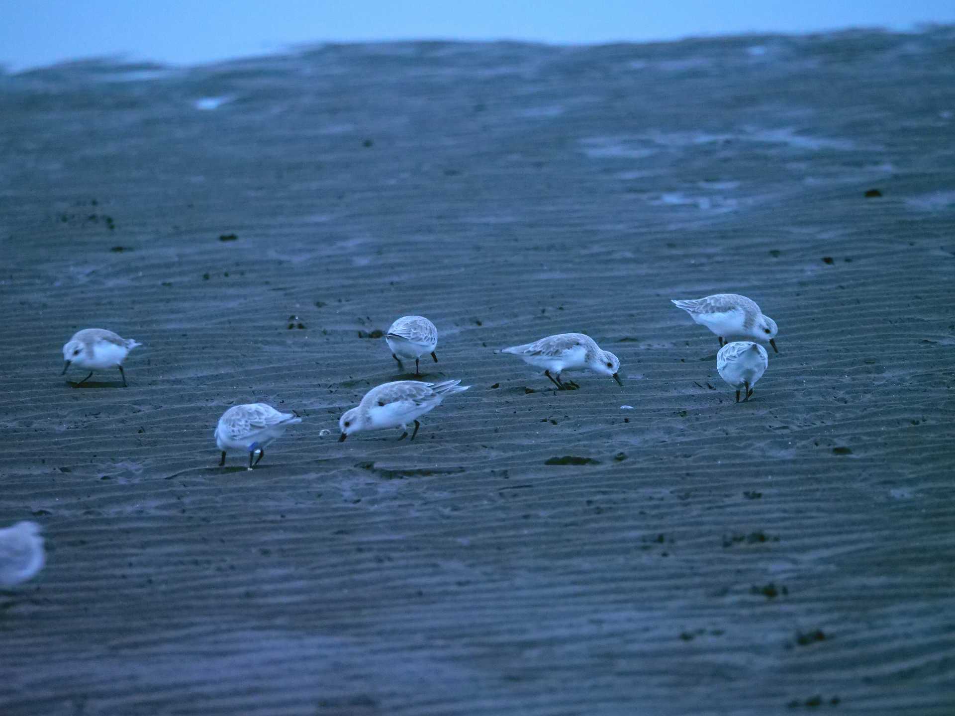 わざと、補正なし、SS,感度固定で、撮ってみました。 「ダイゼン」かなぁ!?「メダイチドリ」? 白いので、「ミユビシギ」? 「ミヤコドリ」。 「ハマシギ」かな? 「オオソリハシシギ」も。 夜明け前だっていうのに、Cマン、3人先着。SS=1/125、F6.3、ISO3200固定で、遊んでみました。感度を上げて、SS落とせば、明るく写りましたが、わざと、遊んでみました。