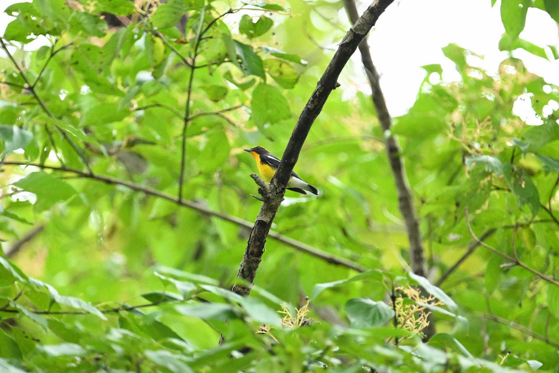 まだ、見られました。 この、やぶの中に隠れてる、「サンコウチョウ」。ちょこっと、顔を出してます。 「キビタキ♀タイプ」も、この辺を、うろうろ。 SS遅すぎて止まりませんが、2羽で、バトル。 静かにジッとしてると、たまーに、良いトコに、止まってくれました。この日は、3羽いたそうです。