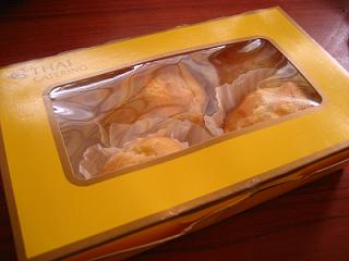 以前パトンに住んでいた時、パトンホスピタルのそばにタイ航空のべーカリーがあった時はよくパンを買ったものだった。でもその後なくなってしまって、空港かタウンのタイ航空のオフィスに行かないと買えなくなってしまい、なんだ疎遠になってしまってた。先日用事があってタウンに行った。その後ウシコさん家に行くのに何がいいかな・・・と思ってたところ、久々にTGもいいかなと立ち寄った。昼過ぎに行ったのにもう残り少なくて、本当に食べたかったプリンケーキはなかったけど、シュークリームがあったのでそれを1箱。6個入りで40Bくらいでしょうか。それから翌日の朝ご飯に。と買ったソーセージロール1個16B。安くておいしいのでいいですね。空港よりもタウンの方が安い気がするけど、気のせいじゃないですよね?やっぱ空港価格なんやろうなぁ。3月7日は日本人祭り!皆で遊びに来てね~~。
