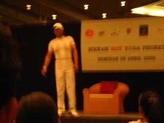 去年からホットヨガに通っている。今回ビクラム先生のセミナーがあるので是非!という事で参加してきた。室内が暗く写真が超ピンボケっす・・・。ヨガは頑張って通っているけど、イマイチまだまだヨガのことを理解していないような人間が参加してもどうかなと思ったけど、結果はとても楽しくて参加して良かったし、ヨガにもっと興味を持てたので良かった。講義の後にはヨガのレッスンがあって、これは楽しみだったけど、たくさん集まった人の多くがインストラクター。通常のレッスンの時には先生たちは一緒にヨガはせずに、指導のみなので昨日は先生たちのヨガをする姿を見てさすがだな~~~と感じたわ。外国からこのセミナーのためにプーケットに来ていた人も多く、その中には日本人もたくさんいた。日本で教えてらっしゃるとか。スタイルもめっちゃいいし、体が柔らかく自分では絶対に出来ないポーズを見せてもらって驚くとともに、彼女たちと同じ事は出来なくても自分も頑張ってもっといろんなポーズが決められるように練習したいといいモチベーションになったのは間違いない。(私の目下の目標は膝がピンと伸びる事)刺激され、モチベーションが上がったのでセミナーに参加した意味はあったという事だ。また来週からのレッスン頑張るぞ。セミナーの後はランチ。場所はメリディアンプーケットビーチリゾートだったので、ホテルのランチブッフェ。なんだかこ炸裂して食べまくってしまった・・・・。ヨガやったのにまったく意味ないし!反省しました。デザートのプリンとマンゴータルトがめっちゃおいしかった!私とプーケットカコさんの2人は周りが驚くほど食べてましたね。今日、明日の2日はリセットって事で控えめの食事にして、踏み台昇降に精を出します。ホテル内で子象にも出会った!人懐こくて、挨拶もちゃんと出来てめっちゃ可愛いわヨガって楽しいし終わった時の気持ちよさがいいですね~。興味のある人はビクラムヨガ・プーケットに1回行ってみては。日本語での問い合わせOKですよ。ビクラムヨガ http://www.bikramyogaphuket.com/