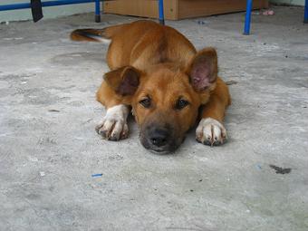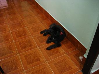 ちょっと前にはるはやたらおしっこの失敗があった。どうやら長い留守番が彼のストレスになっているのでは?という推測をたてた。5月の最初までは人とのお付き合いがあったり、友達のプーケットカコさんとの残りの時間を楽しみたいってな感じで外出している時間が長かったけども、それ以降は特に外出する事も少なくなりいつものゆったりな日常に戻っている。今まで結構今日はどこへ明日は誰とどこへみたいなスケジュールだったので、ぱったりなくなり拍子抜けしているけど、はるとの時間や自分の時間(旦那との時間はそれほど気にしない笑)が取れるので、またヨガもちゃんと行こうと再開している。さてそんなはるは一緒の時間が長いとやっぱ安心するのか、べーーーーったり。相変わらずストーカーなはるは、私がキッチンに行くとキッチンの入り口で寝そべり、ご飯を食べていると足元で寝そべり、ソファーに座ってDVDを見ていると横に来て、私の太ももに頭を置いたりして寝ている。寝ている時も夜中や朝方に気づくと、おしくらまんじゅう状態で背中と背中でおしあった体制で寝ています。すると不思議、やっぱおしっこの失敗はぐっと減った。新しいものがやってくると自分のにおいをつけないと気がすまないのか、そこにはぴぴっとおしっこしてしまうけど、あちこちじゃなくなったわ。今狙われているのはプーケットカコさん家からやってきた洗濯機。これが集中攻撃くらってる(笑)。もう誰もとらんし、しかもはるのんちゃうし!とつっこんでいますが、はるは言う事聞きません。先週の日曜日にスワン・ルアンにお散歩に行きましたが楽しそうでした。人も犬もいっぱいですが、ここには近所のコーやオーガストみたいにしつこく寄って来る犬はいないので、楽しいみたい。こういうとこではちゃんとくんくんして他の犬と挨拶も出来る。家の近所では不可能ですが・・・。そしてはるは、歩きながらいつも私の顔を見ています。旦那が連れて前を歩いててもいちいち振り返って、私の顔を見る。「どこもいかへんし~~」と言ってみますが、私の顔を見ていたいようで、5秒に1回くらい振り返る。振り返りすぎで家の中でも壁にぶつかった事あるのに・・・。気ぃつけーよぉ。ちょっとはるがリラックスしてきたようでよかった。