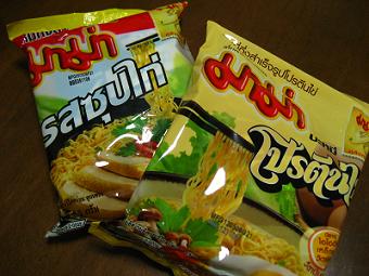 うちにはママーが常備されている。たいていムーサップ(豚ミンチ)かトムヤム味。ちょっと前に新しいパッケージを見つけた。エッグママーとチキンスープママーだ。早速両方買って食べてみた。エッグママーは乾燥のいり玉子みたいのが入ってて、麺は他よりも黄色い。おいしいし、自分好みなので翌日には10個入りを購入。旦那も気に入るかなぁ。自分で作った時にはハムとねぎを入れてみた。そしてチキンスープの方はクノールのチキンスープの味がする。麺は他のと同じ感じでスープの味がチキンなだけ。別に普通かな。まずくはない。エッグママーの方は気に入ったのでまたちょくちょく食べると思う。しかもこの2つは通常は70グラムで6Bなんですが、55グラムとちょっと少なめで5B。ちょっと食べたい時にちょうどいい量かも~!新発売のこの2タイプ、辛くないので辛いのダメな人は試しておくれ。