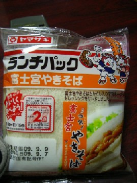 焼きそばパンと言えば焼きそばロールのイメージだった。ローソンのが好きやったな~~~。野菜ジュースが飲みたくなったので、帰りにコンビニへ。パンコーナーに目をやると「富士宮焼きそば」のパンが。ヤマザキのランチパックのシリーズですよ。これは今までたまごは好きでよく食べてたな。でもこの焼きそばは初めて見た~~~。食べてみたら・・・・まぁ普通(笑)。焼きそばをもっと入れてくれたらいいのにというのが感想。もうちょっと頑張ってヤマザキ!