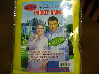 先日カッパを買った。旦那がね。で、なにげなくテーブルにおいてたので、見てみるとなんか写真が変。何が変なんやろと見てみると、合成やん!体と顔が違うでーーー。ホンマはタイ人のモデルさんやのに、顔だけファランの顔持ってきてつけてるんやろうなぁ。タイ人かファランかってだけでイメージ違うんやろか。売り上げに影響があるんやろうか。それにしてもひどい合成の仕方に1人で吹き出したわ!!!