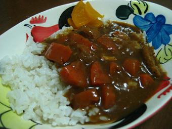 去年の夏にお土産で頂いたオレンジページにレシピが載っててずっと気になってた。でもクリームソースがないから作れない~と思ってたけど、最近気づいたけどここでもクリームソース缶売ってますわ。しかーし、年末にさださんからクリームシチューのルーを頂いたので、これを使って作ってみる事に。私はイメージをして、いつものカレーを作るようにやって、ルーを入れる時にカレールーを先に入れてからクリームシチューのルーを少しずつ入れながら様子を見て行った。具は鶏肉とたまねぎ、にんじんとシンプルに。本当は海老と貝とかにしたかったけど、シーフードを入れたらなんとなく早く食べてしまわないかん気がして、数日に渡って楽しみたかったので、今回はパスして鶏肉にしてみた。出来上がりの経過を見ていると、結果・・・・・カレーは白くなりません!本の写真で見ているとアイボリー色みたいな感じやけど、そんなになるまでクリームシチューのルーを入れるのをためらってしまった。クリームシチューのルーがものすごい濃厚で、乳臭かった。そらそうなんでしょうがね。それとカレーの匂いが混じるのがなんか若干ダメで、1箱に入ってる半分しか入れなかった。味見してみても「これでいいのか?」という感じだったので、途中でケチャップや焼きそばソースなどを入れてみたり。最後にはナンプリックパオを小さじ1杯ほど入れましたが、そこでなんとなくOKっぽくなったので、味の追加はやめてひたすら煮込んでいた。すっかり玉ねぎは溶けて、鶏肉もずいぶん少なくなっている。って事は溶けてるって事か。結果として、ホワイトカレーではなく私の作ったものはクリームカレーといった感じになった。私はやっぱ普段通りのトマトの酸味を感じ、辛味もあるカレーの方が好きなので、もう作らないかな・・・・。もしかしたらクリームシチューのルーを使わない方が良かったのかなぁ・・・・未解決。しかしどう考えても茶色+白で白に近い色にするためには相当の白を入れないと無理ですよね。不思議だ・・・・。しかし、一緒に食べてくれたお友達に感謝。
