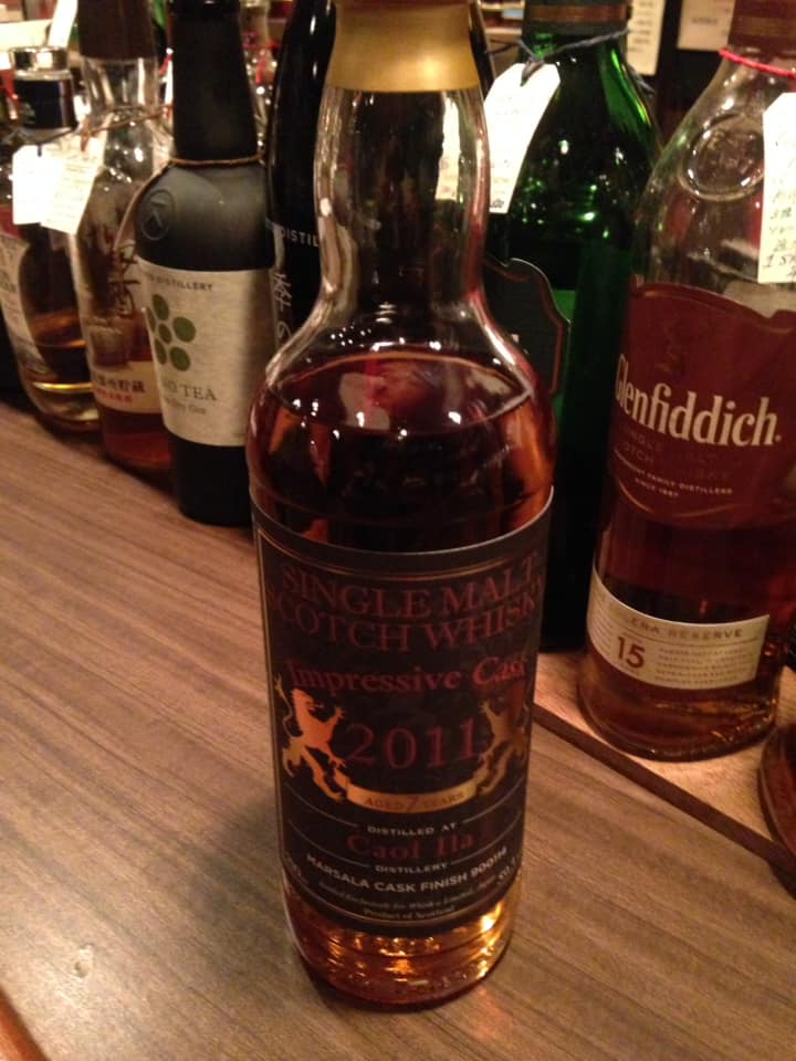 熟成樽へのこだわりということで、最新のバーUK入荷ボトルの紹介です。アイラモルトの「カリラ(Caol Ila)」の7年熟成のシングルカスク。マルサラ酒の樽でフィニッシュ(後熟成)をかけた変わり種です。アルコール度数はなんと59.3度というガツンなボディ。7年という比較的短い熟成期間ながら、まろやかで旨いモルトに仕上がっています。これはもう飲むしかないですね。