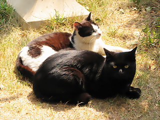我が家の庭を我が物顔に、日向ぼっこを楽しむ野良猫の親子がいる。