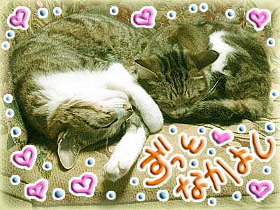 あけましておめでとうございます昨年も様子見・コメントありがとうございました☆かなり間があいてしまいましたが。(^^;ヾまだまだにゃんずともども無事に生存しております年々地球が加速してるのではと思うくらい太陽を一周するのが早く感じてしまいますが。(●ω●)今年はもうちょっと更新できたらと思いますのでわんにゃんともどもどうぞ∩( ´∀`)∩よろしく(っ_ _)っ))お願い致します。********************************