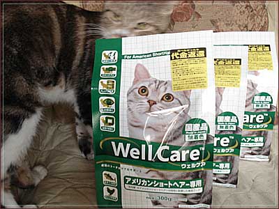 初タメでちょっぴり高級なフードをお試し☆アメショ模様のひめっちへ、アメショ専用フードです。活発なアメショのために関節にいいコラーゲン配合だとか。他にはヒアルロン酸、タウリン、オリゴ糖などなど。食べなかったら代金返還と書いてあります。(’’)さっそく箱に入ったり袋をかじったりするひめっち。顔がブレてます。^^;粒は平たくて、とっても小粒。噛まなくてもいけそうなほど。香ばしい、いい匂いがします50gずつ5パックに小分けされていて酸化しにくくなってます。さっそくお試しひめっち。新しい味に夢中です。代金返還はしなくても済みました。アメショのカケラもない不活発なりんごもお試し。同じく夢中。日本猫用は逃しちゃったし。。><またやってくれないかなー。満足なりー。げぷっ。でも、もうちょっと大入りだったらいいのになー。タメが気になる方は。。こちら
