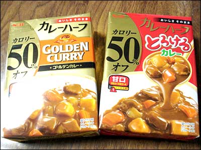 モラタメで今度はカレールウをモラいました☆本格スパイスのゴールデンと、野菜を煮込んだとろけるカレー。2皿分ずつの小分けになっているパウダータイプで少しずつ使うには便利そうです。(・ω・)ハーフシリーズでカロリー半分、脂質80%以上オフの健康志向とか。味は使ったら追加します。<追加>スパイスな方を使ってみました☆カロリーハーフとは分からない感じ。香りがいい♪お鍋にひっつきにくいあたり、油分が少ない?ひぃなの趣味により甘口なので弟君はハバネロパウダー入れてましたが。^^;美味しかったですモラが気になる方は。。こちら