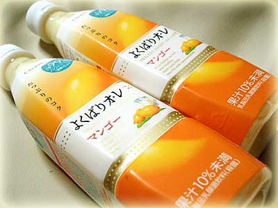 カルピス製「よくばりオ・レ」のマンゴーをモラいました☆ミルク味マンゴー味もしっかり濃ゆいのに99キロカロリーだそうな。甘党ひぃなにピッタリ美味しいですvとはいっても・・カロリー全然詳しくないのですが。^^;100以下だから・・多分少なそう?モラが気になる方は。。こちら