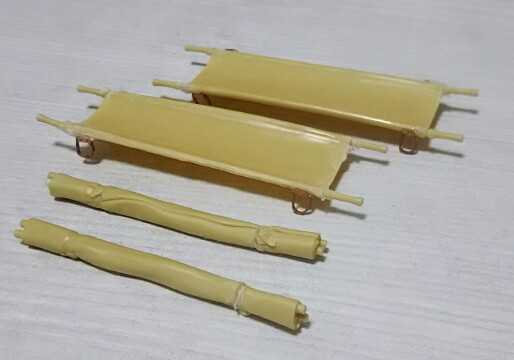 担架を載せる枠と酸素ボンベを車体に取り付け、
