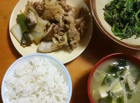 豚肉の生姜焼き、ほうれん草の胡麻和えです。