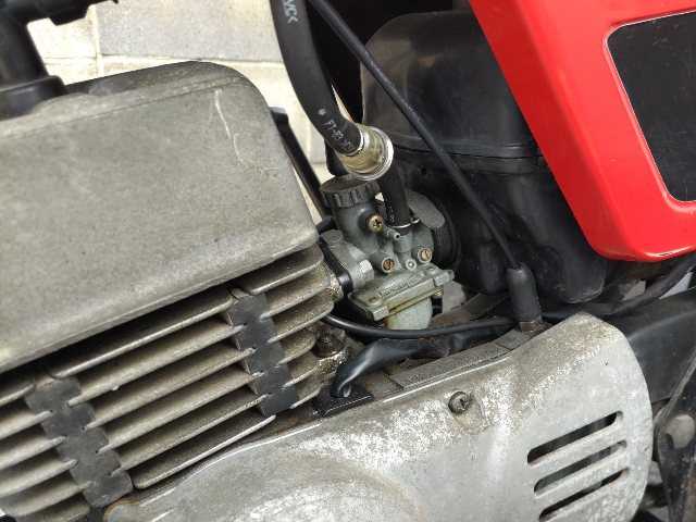 (キャブレター後ろのチョークレバーを下げると、チョークが引かれた状態になります。)
