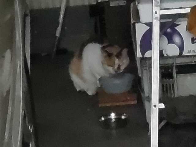 某宗教施設のサバトラ(画像は明るさ補正してあります。)