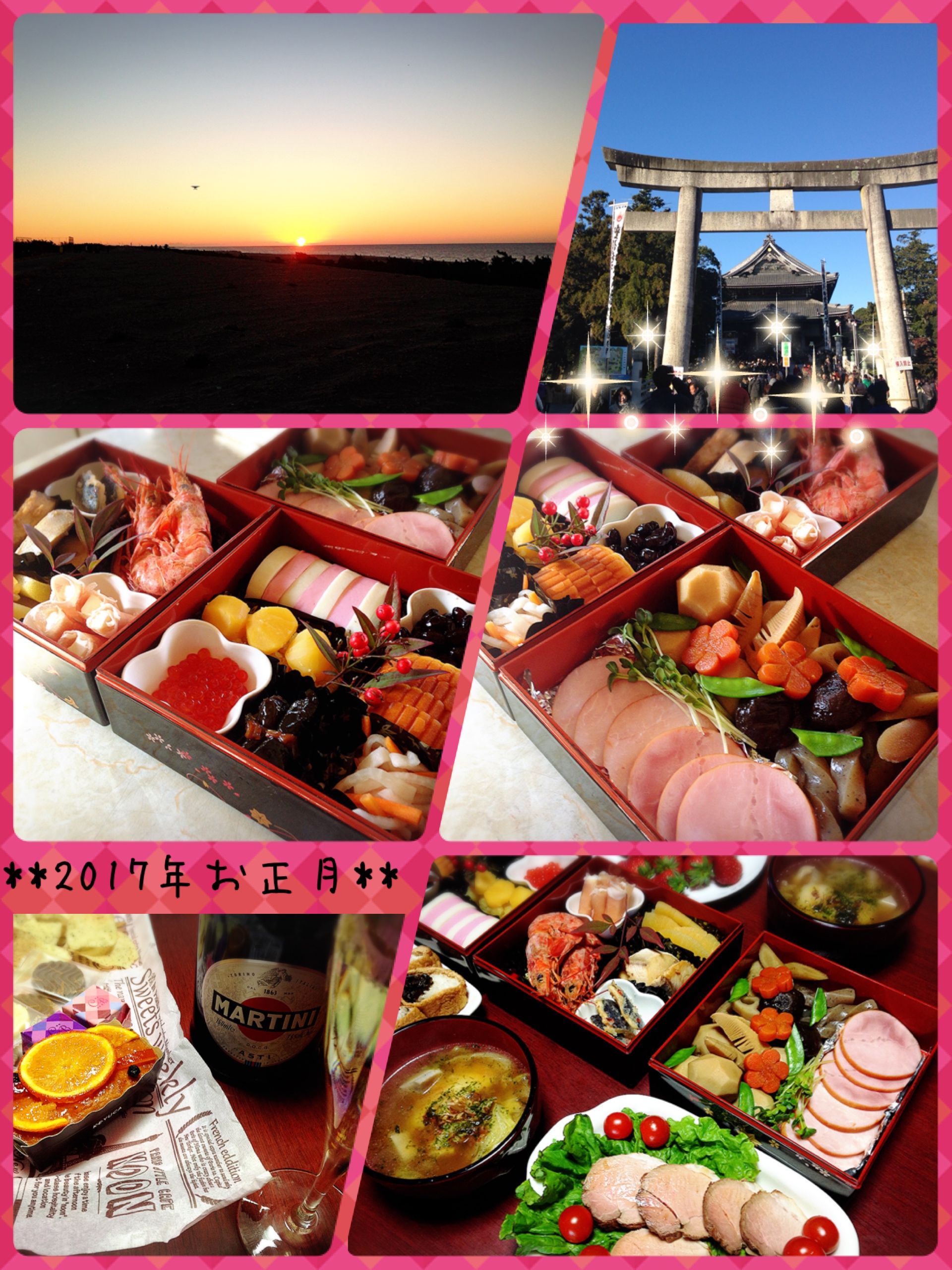 暖かなお正月で 新しい年がスタートしています。 今年はどんな年になるのかなぁ。 大好き人 大好きなものに囲まれて おだやかに にこやかに。 年女です(≧▽≦) でも もう羽ばたいたりとか 飛躍したりとか そういうのはいいんで(笑) 1歩づつゆっくりと歩いて行く、 そんな1年であれたらいいなと思います。 元旦に 初日の出を拝んで 今年はスタートです(*´▽`*) お天気もよく 素晴らしい日の出。。。 こちらは ミスチルさん、 「足音」のMV撮影の地、 中田島砂丘からの初日の出です。。。 日の出の後は 初詣に出掛け その後はお家でのんびりと 飲んで食べて飲んで食べて(^▽^;) 大晦日にがんばって作ったおせち料理は こんな風に仕上がりました♡ 今年も どうぞよろしくお願いします(*´▽`*)