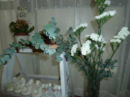先日~京都府に多肉を買いにってブログに書いたら京都までお買物~実はぐり~の家から・・・車で10分くらい走ると京都府に入るんです~ヨ。。。でも皆さんが想像してる京都は少し遠くと言っても駅から電車に乗ると40分くらいですが・・・昨日は手芸教室でハートさんまで行ってました~いつも車で送迎してくれるお友達は何年も前からキットの材料をいっぱい買っていて説明書だけでは出来なくてハート先生に習っています来年用にと・・・素敵なのが出来ました~~~ヨお友達は帽子が好きでまたとっても良く似合っているの先生手作りの帽子もゲット・・・ぐり~はペンケース作りに挑戦・・・バレーシューズ型ペンケース次回完成予定・・・ユーカリとスターチスを買って来ました~上から写すとスターチスが雪の様今日もぐり~のブログに遊びに来てくれてありがとう~~~