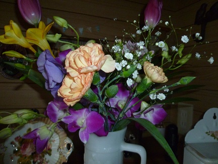 昨日は雨だったのでお部屋でリース作り・・・2年位前になるかなぁ紫陽花のリース寂しいので木の実を2階のぐり~の部屋からバスケットの中に木の実・・・本当はもう一つ同じバスケットの中にもでも大した実がなくて思うように出来なくて疲れた・・・地味すぎたよう暗いわまた何か付けてみます・・・ぅふふ昨日お友達から明るい花束を頂きました~赤いチューリップに紫のスイトピーカーネーションにカスミソウお部屋が明るくなってとっても嬉しいです・・・お庭にもお花が少ないし~ネ。。。今日もぐり~のブログに遊びに来てくれてありがとう~