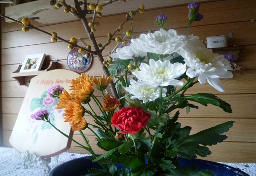 暖かい日が続いて嬉しいですが何か心配です"(-""-)"年末(30日)にご近所のお友達からイタリアに行ったお土産を頂きました~お菓子とチーズペンダント~~~素敵なペンダント娘さんがおばちゃんに似合いそうって選んでくれたそうです~早速お正月に付けて出かけました・・・7年前だったかしらイタリア旅行の思い出がよみがえって来ました~チーズやハムが美味しくてパスタは食べれなかった~~辛くてピザは美味しかった思い出食べる事だけ覚えてるぐり~です~ふふふ余ったお花も活けて楽しんでいますオリズルラン暖かいので枯れずに元気ですが鉢植えなので移動させた方が良いでしょうネ~今日もぐり~のブログに遊びに来てくれてありがとうございます