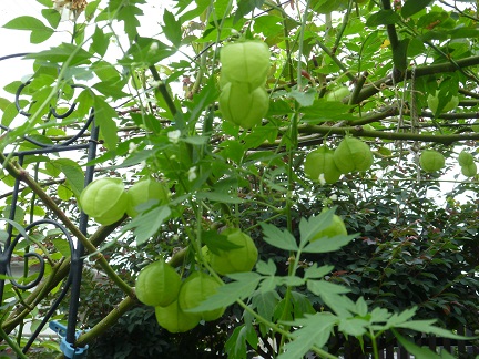 今日のお昼から蒸し暑くなって来ました~ しばらく涼しかったので体が・・・ まだまだ こんな日が続くのでしょう~ネ。。。 そうそう シュウメイギクのツボミ見つけました~ まだまだ 小さなツボミ~ 今年は猛暑で葉が焼けたり枯れたりで これだけなの~ でも 開花が楽しみ・・・ 葉の上にバッタが遊びに~ 本当は葉を食べに来てるんだけど ほって置きました。。。 フウセンカズラの細い枝が1本 門柱の横に出て来ました~ ここは良い感じなので 嬉しいです~🎈 ミニバラ 今日もぐり~のブログに遊びに来てくれて ありがとうございました~