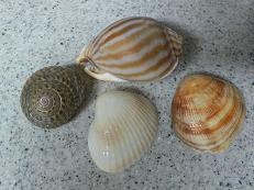 今日は長女が仲良しのお友達と小学生対象のバスハイクに参加。海辺で貝拾いをしたそうで大量にお持ち帰り帰宅して早速、袋から出して見てみると・・・中身が入ってる!!生きてる!!どうしようかと相談した結果、とりあえず煮て、中身を取り出そうということに。夫が貝を煮出すと・・・すごい悪臭が(食べられるか、図鑑で調べて一個は食べられると判明したものの、砂抜きしてないので断念・・・っていうかこの臭いに食欲は沸かない)とりあえず煮終わった貝から中身を出して作業終了。そして夫は「気分が悪い」とダウンお友達と一緒に拾ったお揃いの貝。また一つ、宝物が増えました