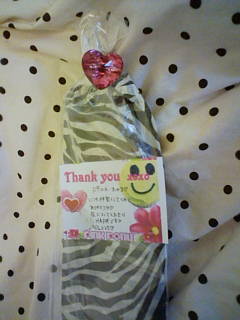こんにちは~♪今ポスト見てきたら☆Juicy☆ちゃん ウッドロザリオ が届いてましたヽ(´ー`)ノめっちゃ めっちゃ 可愛い~('-^*)♪ウレシ━━━━。+゚(*´∀`*)。+゚━━━━ィイ!!すごーく気に入りました~ヽ(´ー`)ノラッピングもいつも可愛いハートのヘアゴムなのね~(*^_^*) 嬉しい♪今夜 夜中からプチ旅行に行くの~(o^_^o)ロザリオちゃん連れて行きます♪☆Juicy☆ちゃま~いつもありがとー(^з^)/チュッ