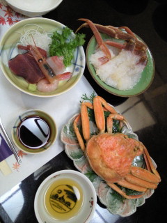 こんばんは~(^O^) 今回のプチ旅行の目的は カニですo(^∇^o)(o^∇^)o お刺身や塩釜焼き・焼きカニみそ・カニしゃぶ・雑炊 もうお腹いっぱいで横歩きしか出来ない((爆)) お夕飯前に温泉入ったけどもう1回温泉入りたい~(^O^) その前に一眠りしないと食べ過ぎて苦しいよ~(@゜▽゜@)