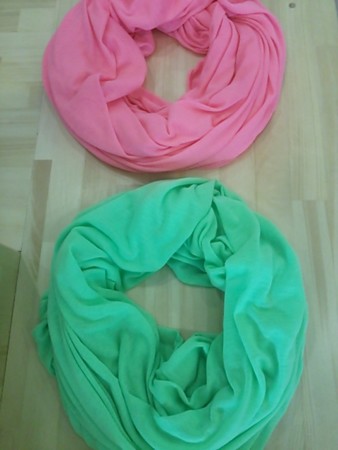 GRLさんのスヌード今回は グリーンが届いたよぉ ワタシの 携帯画像では綺麗な色がでない >< SHOPのお色のまんまです500円 気に入り過ぎて ほぼ 毎日 使用してます今日もね薄手の柔らかい生地ですLaFine の Tee みたいな生地 夜にお洗濯したら 朝には乾いてるし皺もつかないしオススメです 次回 送料無料になったらイエローも買います って 在庫 △だぁ・・・