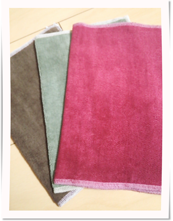 NO.4昨日 届いていました♪色も 理想通りの お色でした(*^^)vコチラです↓日本製マイクロファイバークイックルダスター3枚組 300 円 送料込 丁度良い厚みですね♪お洗濯で繰り返して使えるしよくあるマイクロファイバー製品のように指がひっかかったりしないし手触りもツルツルですが埃・汚れ 綺麗にとれました!これは リピ決定です(*^^)v