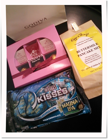 親友からHAWAII の お土産 と バレンタインチョコが届きました(^○^)わーーーい♪Eggs'nThings パンケーキMIX嬉しいなぁ♪卵も牛乳も不要なんですねEggs'nThings エプロン&パンケーキミックス