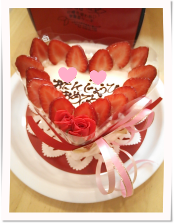 わぁ~いハートのケーキ だぁ♪イチゴの中に 薔薇も 隠れてるこちらのケーキも 予約していてくれたみたい夜まで待てずに 食べっちゃったという食いしん坊PINKですつぶ や コメント どうもありがとうございます拝見しました☆GOOD☆ちゃん 日記にお祝い どうも ありがとう☆JUICY☆ちゃま の お祝いメールに「 お誕生日を迎えて また 新しい年だよ^^今年は きっときっと HAPPY なことが たくさんあります・・・・ 」って あり何度も 読み返してちょっと 涙が出そうだったそうだね 新しい年はHAPPY で いっぱいに したい♪毎日 笑って 過ごしたい章子ちゃん♪いつも 気に掛けて下さりお優しいお言葉もどうもありがとうございます