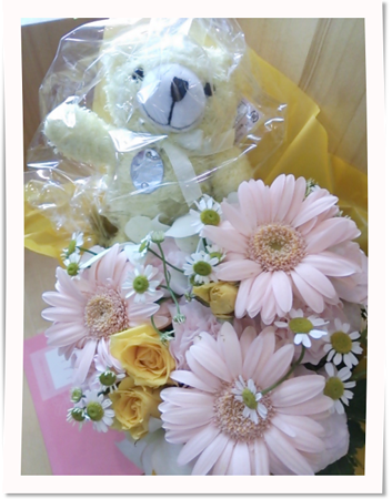 こんにちは♪ご訪問ありがとうございます朝から ウルウル しちゃいました ><オフィスに到着するなり 宅配便が・・・今日 お誕生日なんです♪お連れ様からお花 何度か貰った事あるんですが「 枯れると悲しいから お花 もう いらないよ 」って 交際当時に何度も言ったのでお花はしばらく頂いていませんでしたウルウル大好きカラーのPINKをチョイスしてくれてる♪BIRTHDAYベアちゃん 可愛いなぁメッセージカードにも お連れ様らしい 嬉しい言葉が・・・HAPPY