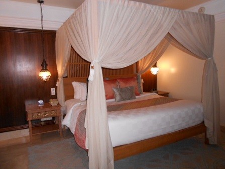 旅行記 なかなか 書けないですが・・・今日は お部屋編AYANA Resort and spa Baliルームカテゴリーはクラブルームです天蓋付きベッドのお部屋コチラは 昨年のお部屋ワタシは こちらのお部屋もバリっぽくて好きでしたソファーは 画像では小さく見えますが大人2人が余裕で寝れるソファーBEDでしたパウダールームバリの木彫りなどインテリアは バリっぽくて 好きです浴槽とシャワーブースのセパレートになっていますお部屋着はバリっぽいお揃いのスリッパもありました(●国の方? コチラ着て HOTEL内 ウロウロするしプールに日除けとしてなのかな?着て来られていて・・・ビックリです)クラブルーム・ラウンジは12歳以下のお子様は利用できないので とても静かですクラブラウンジでは 大声で話す人もいないしゆっくり食事やお酒も楽しめるので良かったですトイレは簡易ウォシュレットあり!(これ重要! ない所多いです)トイレットペーパーに AYANA の 刻印が床や壁は天然石のタイルなので裸足だと(裸足では歩きませんが)ひんやりして気持ちイイエアコンも効き過ぎるくらいでとても快適でしたまた ランドリーサービスも4枚まで無料とか色々 特典あり 助かりましたTシャツにもアイロンしてハンガーで届けて下さいます2日目に続く