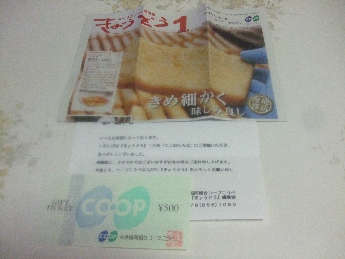 コープこうべの機関紙に投稿が採用され、商品券(500円分)が送られてきました。
