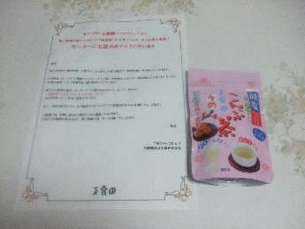 モニプラの当選品、減塩梅こんぶ茶(玉露園)が送られてきました。