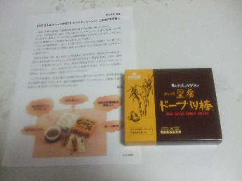 「生しぼりしょうが湯プレゼントキャンペーン」に応募。「生しぼりしょうが入りひとくち黒糖ドーナツ棒」が送られてきました。