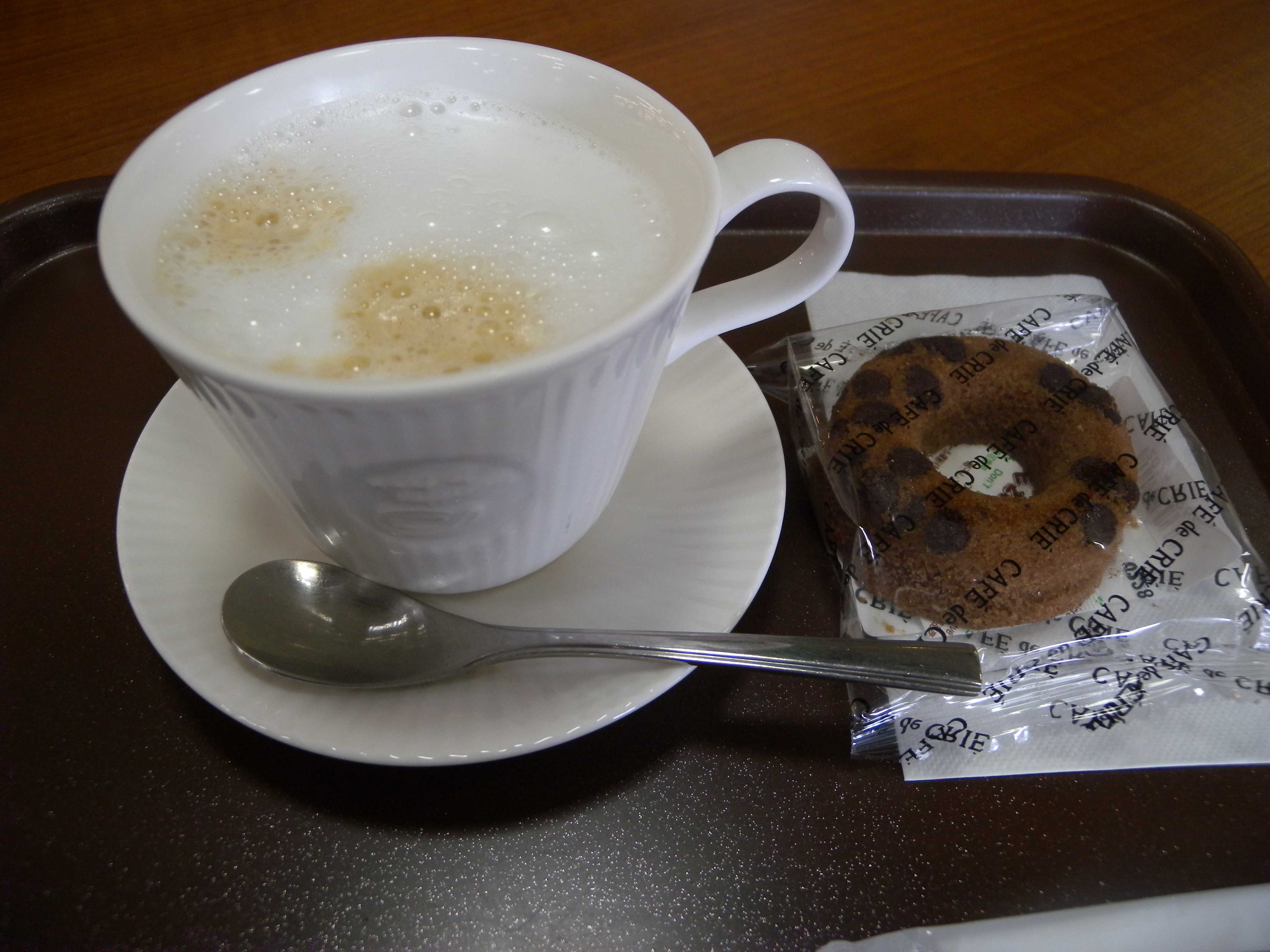 カフェラテとベルギーチョコドーナツをたのみました。ドーナツ、おいしかったです。
