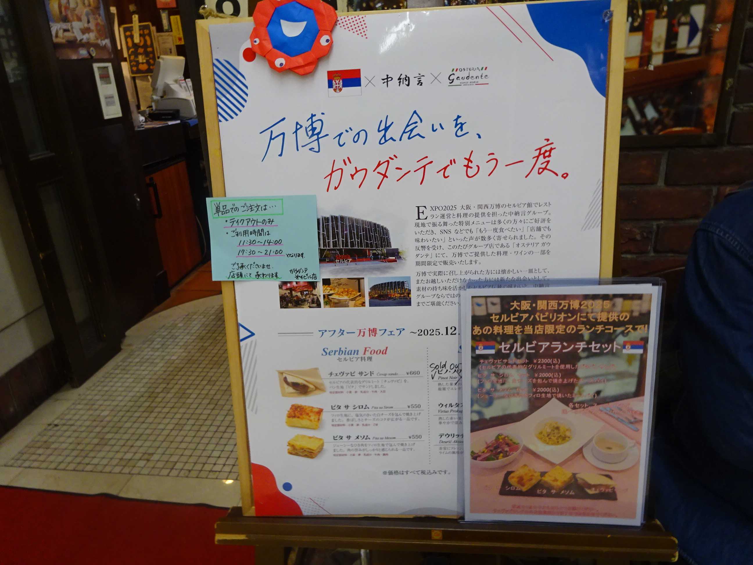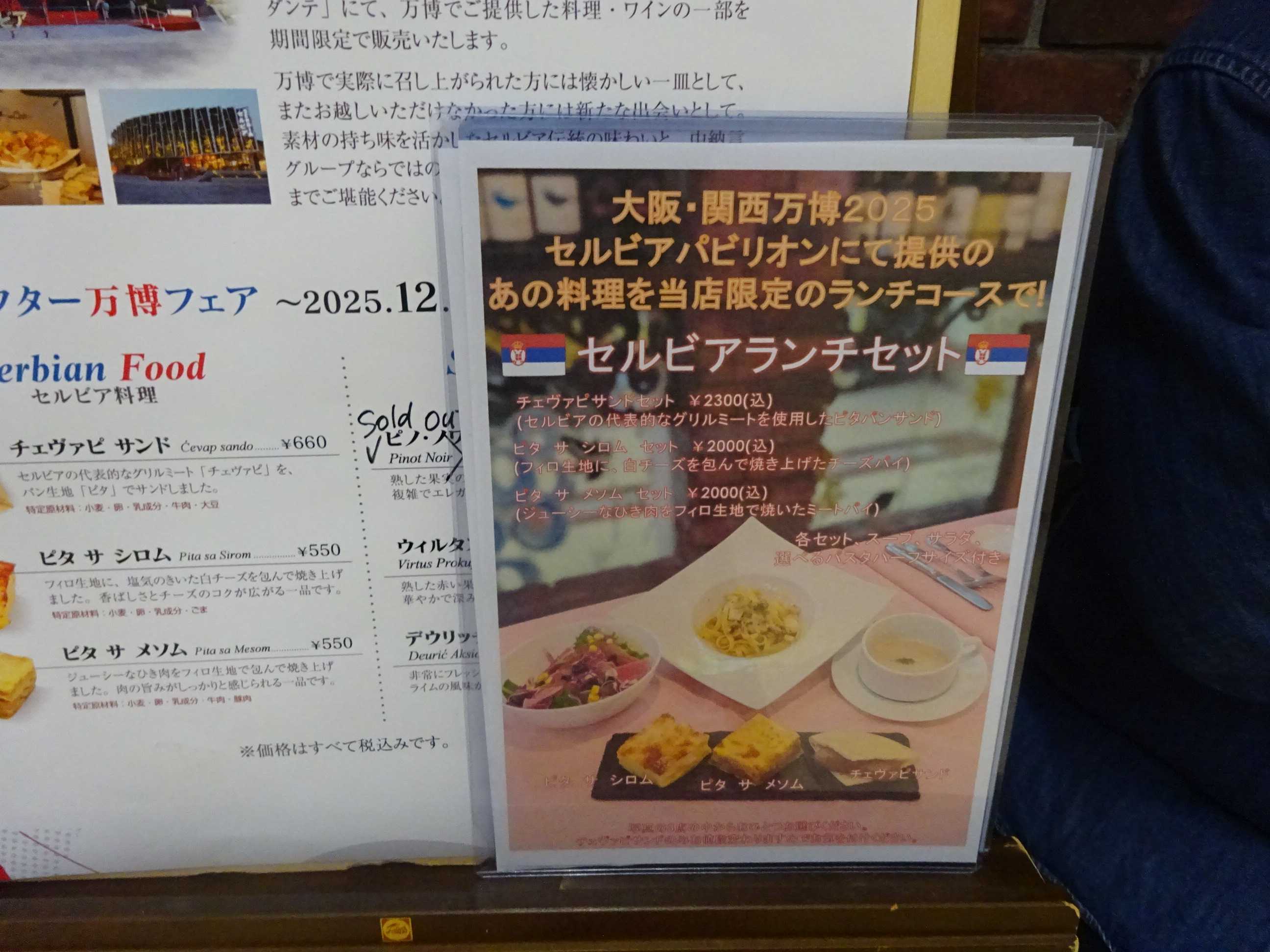 万博セルビア館で提供されていた料理が食べられると聞き行ってきました。ミートパイがおいしかったのでもう1度食べたいと思いました。セルビアランチをたのみました。