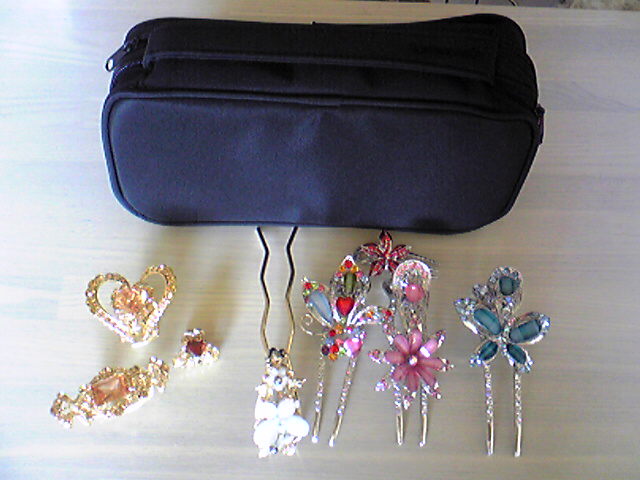靴で狂喜乱舞してたので、すっかり忘れてました。今日は待ちに待った、リトルムーンのキャンディージュエルが届きました~。トラベルポーチ「マイル」も同梱で注文してました。早速詰め詰め。意外にたくさん入るんですね~。強度は、まぁまぁです。ヘアアクセを優しく包み込むようにソ~っと入れれば問題なし。ネット部分は、ガシガシ入れるとビリッといっちゃいそうで怖いです。キャンディージュエル~♪可愛い(*^^*)明日は髪を巻き巻きにして、オリヴィアをデビューさせよう。バンスのバネがしっかりし過ぎてカタイ!!その分、ガッチリ留まるんですけど、最初開かなくてドキっとしました(笑)自分の中で勝手にドラマティッククリップ特集をして、集めてみました。このステイシーバタフライが一番のお気に入り。リアル蝶々じゃなくて本当に良かったです(笑)マルチカラーって髪につけるには服装とも合わせづらくてスルーしてたんですけどこれはうるさくない配色なので良いですね~。かんざし「舞」は、浴衣用です♪浴衣といえば、去年から挑戦している、帯留め作り。薔薇師匠に教えて貰って、今年こそは成功させたいなぁー。コームくらいは作れるんだけど、帯留めはムズカシー!薔薇師匠の帯留めと簪写メだからチッチャイけど初めて着物を着たときの、記念すべき1枚。ちなみに、夜会巻きも初めてでした(*^^*)自分でやったから、盛り過ぎてナメック星人みたい、って言われました。が~ん(´△`)今年の目標は、自分で着付けできるようになることです♪この時は、着付け教室で3人がかりで帯を締められました。くるしーーっ着付けの先生の身長が私よりも30センチも小さい方だったので背伸びし過ぎて足がつったわーー!って言われ…終わった頃には、お互い汗がだくだく。良い運動になったわー!って言われました(゚◇゚;)