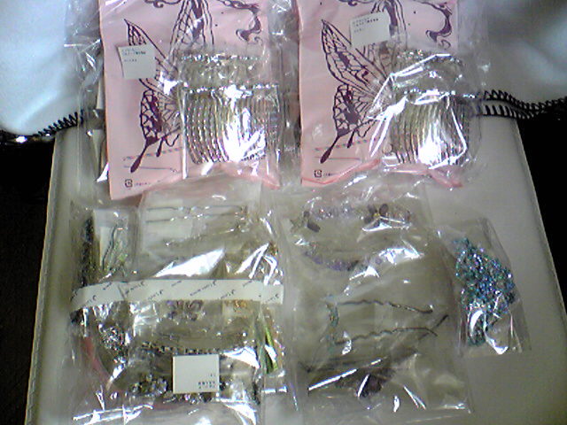 リトルムーンお取り置き分が到着しました。セール品と初オークション品!ぜっぺ貴婦人を500円で落札しました(笑)あと、アレンジセットも購入~。ヘアアレンジ4点セット(スティックタイプ)バンスクリップばっかりジルコニアプチバンスのカラーバージョンを結局買ってしまった。シャンパン全部揃いました♪ミネットとミクシャを全色コンプしました777円ですって。2000円くらいで買ってたような気がする…。クレセントパールはなんと840円!!前に定価で買おうか迷ってるうちに忘れてたんだけど、よかった~。3000円で全色買ってたら泣いてるよ~(T_T)セールの時の値下げ率が凄いんですね。発売直後に買うのが怖くなってきたー。今日は早速、ぜっぺ貴婦人を使ってアップにしてみました。ザックリ留まるから、時間短縮になっていいわ~~(T_T)普段、モチーフ部分を持つのが気になって、ソ~っとやったりしてるうちに失敗しちゃって、やり直し…ってパターンが多いからこれでザクザク髪型を作ってから、キラキラを挿せば早い早い♪夜会巻きもお団子もすばやく作れます。違う色も欲しいなー。
