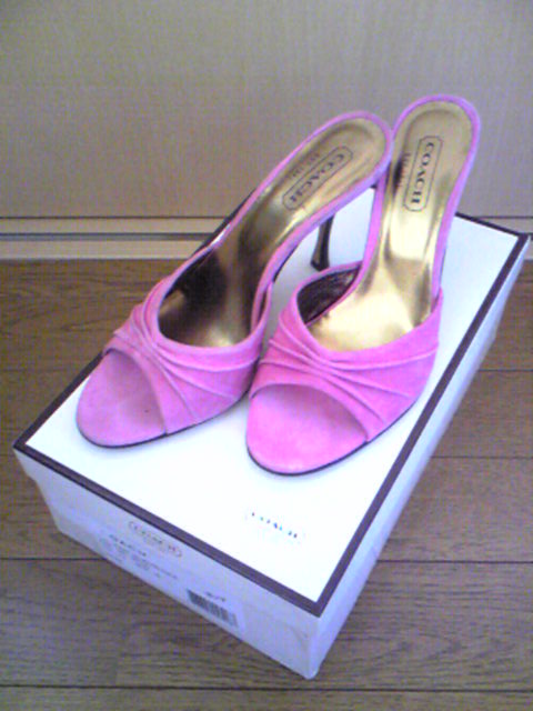 靴にハマリ出してから早くも1年。集めすぎ!ってツッコミを多々受けながら1年。そんな靴オブザイヤー。そのうち何足かは、いつのまにか家出してました。誰だ~連れさらったのは~。最近ヘアアクセに集中してたので鎮火気味でしたが、一気に再発してしまいました!久しぶりすぎて爆発したお靴達…5足届きました。いつもお世話になっている、靴セレブの方に譲って頂いたものです。ぴかぴかの新品だ~。定価でこんな買ったら破産3回くらいしなきゃいけません(´△`)私が靴の師匠と崇めているお方です。今回初めて手にするブランドもあるので、お出かけが楽しみ~。COACH コーチ 定価?Emma Hope エマホープ 定価\52500Lulu Guinness ルル・ギネス 定価\42000Sergio Rossi セルジオ・ロッシ 定価\85000(!!)Alexandra Neel アレキサンドラ・ニール 定価\73500(!!)1足はこぐまに、1足は母行きです。海外では定価は3割くらい安いそうですが、国内定価、驚愕ですね。Alexandra Neelは、老婆になるまでに1度は履きたい靴のうちの1足でした。Lulu Guinnessは六本木ヒルズに直営店があるそうなので見に行きたいと思います。ヒルズって1回しか行った事がない…。なんか入っただけでお金取られそうで(笑)目の前を通る事はあるんですけど、その度にビクビクしてカニ歩きしてます。 大好きなセルジオロッシ♪6月で梅雨に入ると、なかなか新品をおろす勇気が出ない!この前も、ウキウキしてお出かけの準備をしてたら、ゴロゴロ…ピシャーン!!か、雷ー!しかも、雹まで降ってきました。今日も雷鳴ったらどうしよ~。さっき、嬉しくて家の中で靴踊りしながら「見て~アレキサンドラ・ニールだよ!可愛いね!可愛いね!(´▽`)」って旦那さんに見せてたら「…あれきさんだーおりょう?」( ̄□ ̄;)!!それは、男前~!おっとっこまえ~アハハン♪の人だよ~!!!