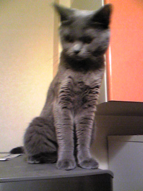 最近ぴのさんのお気に入りは、冷蔵庫の上から監視!ねこ神さまとしてニャゴニャゴ見守っています(・w・)とうとう登るようになってしまった冷蔵庫…。このままじゃ、シーリングファンに登るには時間の問題?!いやだぁ~ぐるぐる回るネコなんて!高いにゃ~今日も平和かにゃ妙に真剣しかも…この高さからジャーンプ!!!!ぽい~ん…普通の仔猫なら骨折するよ(´△`)2m近くあるのに…今日は台風の為、仕事は臨時休業にしました(*^^*)しかも、昨日実家でケガをして足が包帯ぐるぐる巻きなので仕事にならん!…ドアに挟んだだけですけどね。でも指がスパーって切れたので結構大変な事に。今週は台風とケガの為休んじゃおうーってことで、ぴのとゆっくり過ごせます(;^_^Aまとまって休むのは久々!ぴのもご機嫌!意地っ張りやさんなので、なかなか素直に甘えられないぴのちゃんも、今日はうしろをついてまわって、うみゃう~うみゃう~(>_