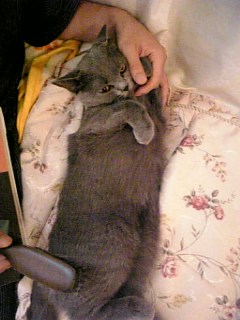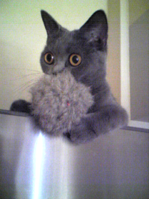 ぴのの1番お気に入りオモチャ、ぴの色のポンポン!ご飯の時も、寝る時も一緒です。最近の寝床がすっかり冷蔵庫の上になっちゃったので、こんな状態ですくわえてるぷるるる…そして高速お手玉開始!ポポポポポンッ女の子だから、ピンクの薔薇ベッドとかピンクのイチゴハウスとかいっぱい買ったのに、結局気に入るのは、グレーの物ばかり…ネコは長い波長の光を感じる事ができないと言われているので、長い波長(=赤)はあまり好まないんでしょうね。ってことはピンクや赤のブリブリコーディネートは無駄なのね…(´△`)やはり、狩りの本能に基づいて、グレー…ねずみ色に1番興味が行くのは納得!だから自分のシッポ追いかけちゃうんだね(笑)昔ほど女色・男色と分別はされなくなったけれどやっぱり女の子には暖色系を、と思ってしまいます。最初、ピンクのリボン首輪をつけてあげようと思ったんですけど周りから「トゲトゲの首輪がいい」だの「南京錠が似合う」だの…ぴのはメスなのにー!!やはりデスキャットなのか。こんなぴのちゃんでも、ピンクの薔薇ベッドで寝るときもあるんですよモコモコの巻き薔薇ベッドただし5秒で移動します…