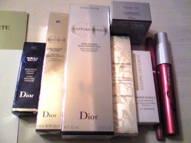 年越し準備のひとつ!毎年恒例のコスメ買いだめツアーをしてきました。毎年こうなるのに、、、今年は少ないっ!コンシーラーと目元美容液を買い込んで来ました。目が元々、とてもくぼんでいるので、天然クマが毎日ある状態なんですよ。下手すりゃ、毎日「北斗の拳状態」です。なので、目元ケアを怠ると、とんでもない疲れやつれフェイスになっちゃうんです。今回はあたらしい美容液を買ってみました!クリスチャンディオール【カプチュール】トータル アイ 15ml 9000円これがすごくいいんです!今まで、シャネルのプレシジョンアイクリームでしたが、メイク前に使うとアイメイクがよれることが多くて…。これは、さらっとしたテクスチャなのに、しっとりするんです。しかも、メイクがよれない!!かなり気に入りました。細身のボトルでポーチにもすっぽりなのが良いですね。こちらのコンシーラーとあわせて使います♪【クリスチャンディオール】スキンフラッシュ &スキンフルイド他に、コスメデコルテAQのコンシーラーとリキッドアイライナーを購入。必要な物だけ買ったので、少量になりました(笑)誘惑に負けて1年分買い占めとかしちゃうので、シャネルは寄りませんでした…('A`)来年は、目元ハツラツな1年となりますようにー!