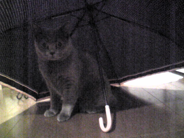 ただいま~~~って玄関のドアが開くと、寝ていてもご飯中でもダッシュで駆けて来るぴのたん。リビングは閉まってるので、ドア前で待機。いそいそいそ…早く開けてよぉリビングドアを開けて、ただいま~ぴの~(´▽`)ってスリスリしようとすると真横をスル~えっえっお出迎えじゃなかったのっ行き先は…玄関の傘。(まだ干してある)目ぇ光ってるし!!どうしてそんなに気に入ったのか…不明デス…。